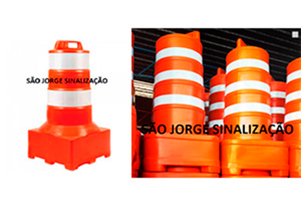 - Confeccionados com altura padrão de 90 cm, base plástica cônica em polietileno (PE) com 21 cm, com enchimento em concreto, tubo de PVC com diâmetro 1 ½” e 2 ganchos metálicos, em lados opostos, para fixação de correntes, com peso aproximado de 5,0 Kg.